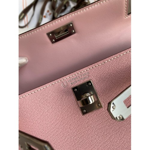 Hermes Kelly Mini II Sellier Bicolor Handmade Bag in Rose Sakura and Nata Chevre Mysore Leather