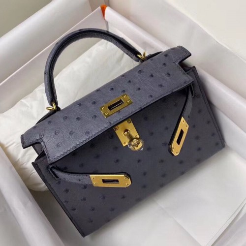 Tags: Hermes Kelly Mini II Sellier Handmade Bag In Gris Agate Ostrich Leather, Replica Hermes, Kelly 20cm