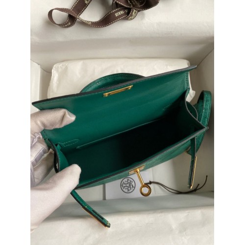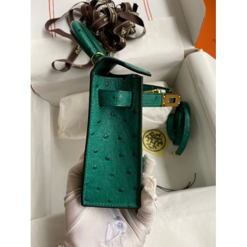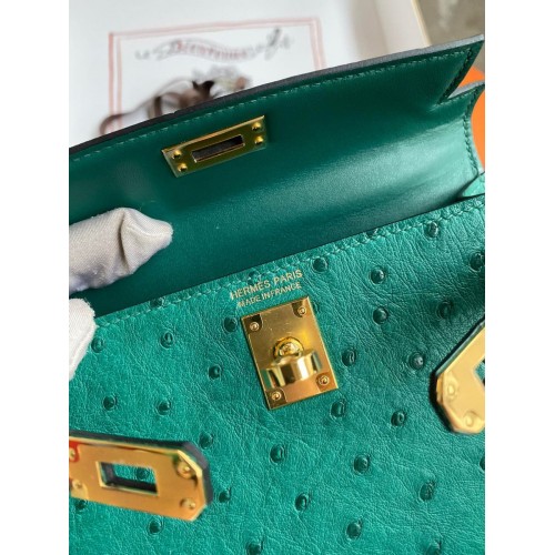 Hermes Kelly Mini II Sellier Handmade Bag In Vert Vertigo Ostrich Leather