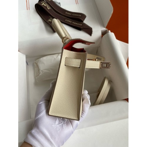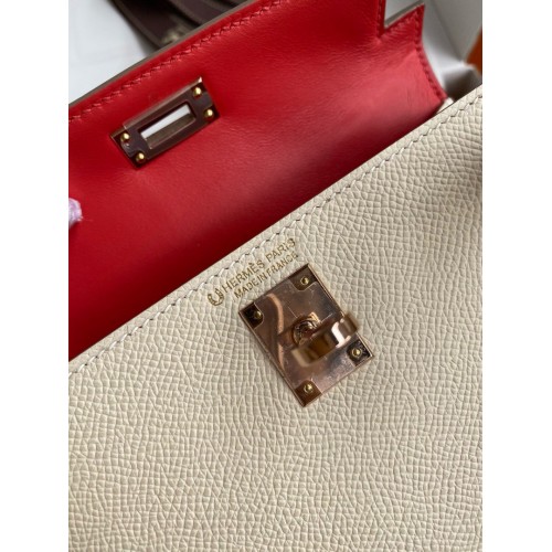 Tags: Hermes Kelly Mini II Sellier Verso Handmade Bag in Craie and Red Epsom Calfskin, Kelly 20cm