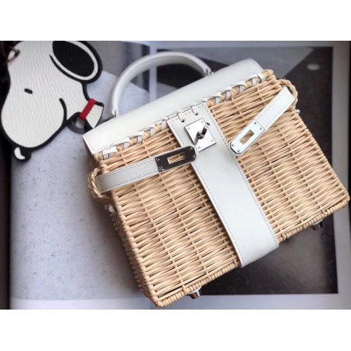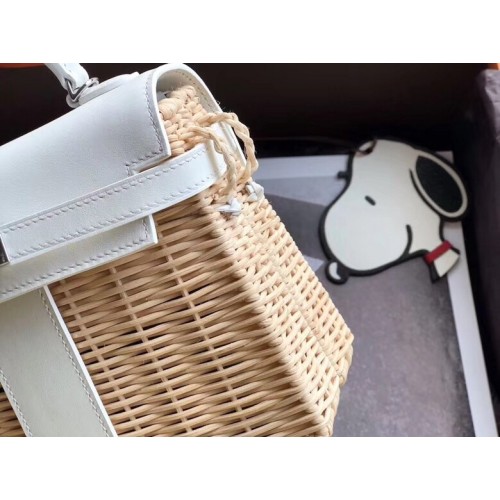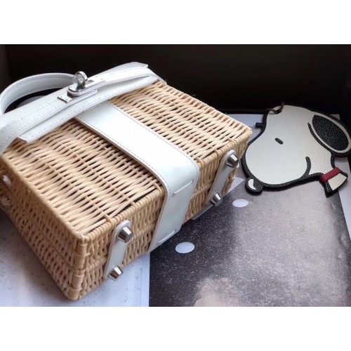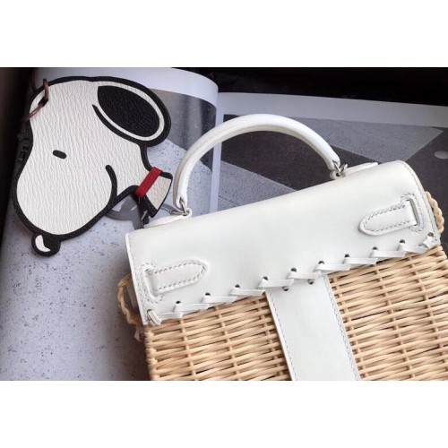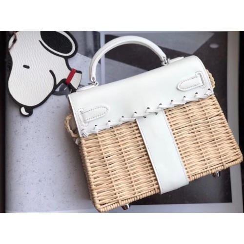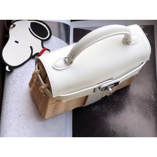 Hermes White Picnic Kelly Mini 20cm Wicker Bag