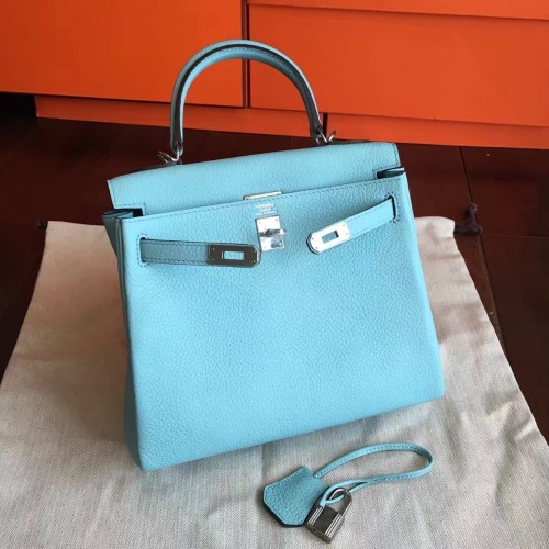 Hermes Blue Atoll Clemence Kelly 25cm Retourne Handmade Bag