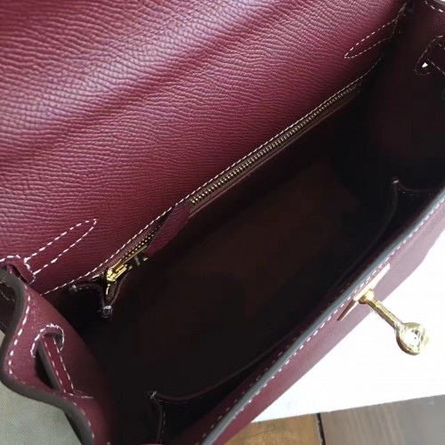 Hermes Bordeaux Epsom Kelly 25cm Sellier Handmade Bag