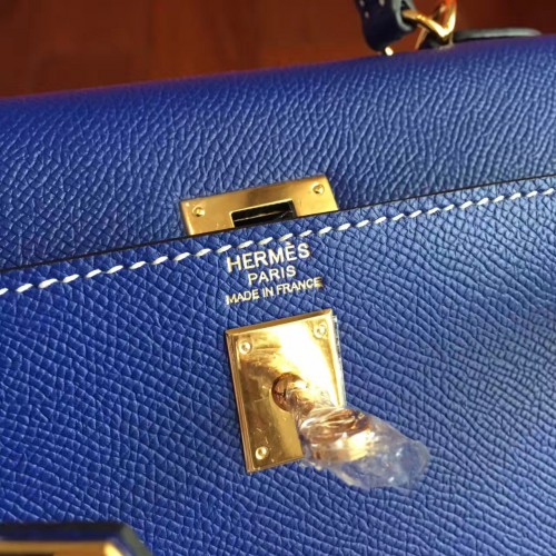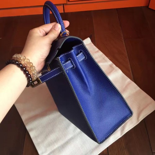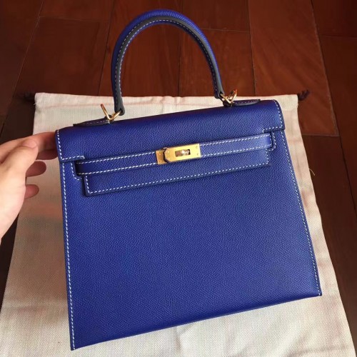 Hermes Electric Blue Epsom Kelly 25cm Sellier Handmade Bag