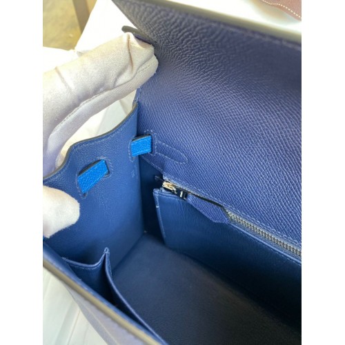 Hermes Kelly Sellier 25 Bicolor Bag in Blue Saphir and Blue France Epsom Calfskin