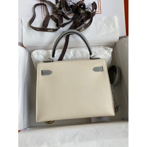 Hermes Kelly Sellier 25 Bicolor Bag in Craie and Gris Mouette Epsom Calfskin