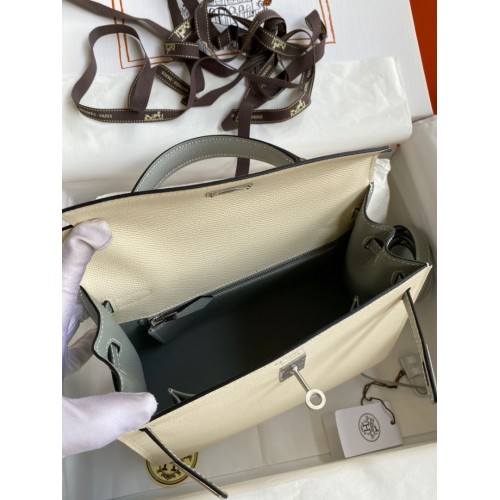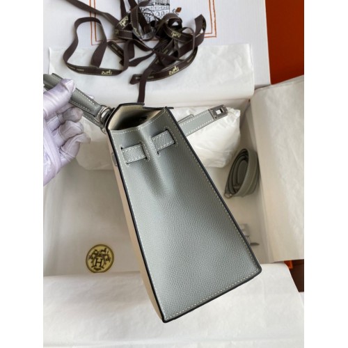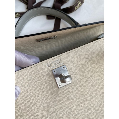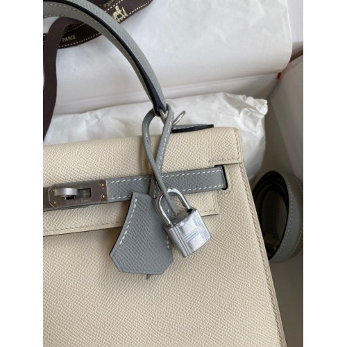 Tags: Hermes Kelly Sellier 25 Bicolor Bag in Craie and Gris Mouette Epsom Calfskin, Kelly 25cm