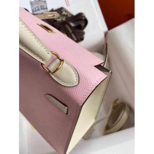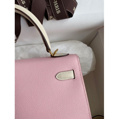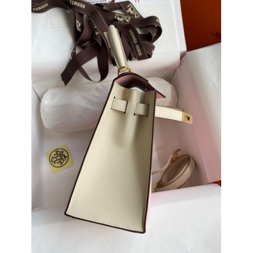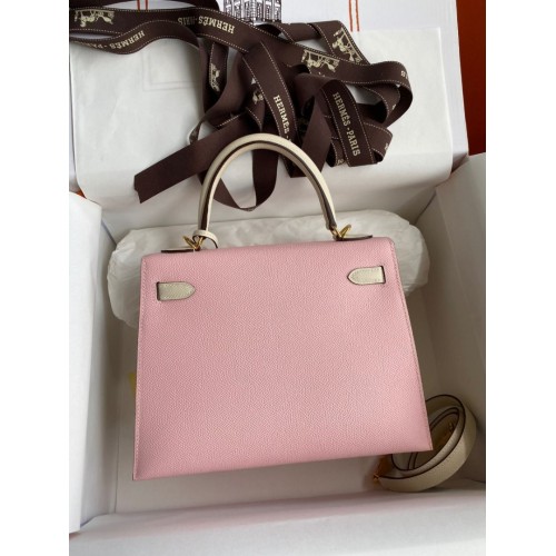 Tags: Hermes Kelly Sellier 25 Bicolor Bag in Rose Sakura and Craie Epsom Calfskin, Kelly 25cm