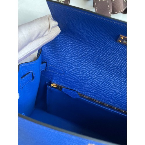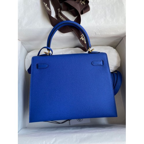 Hermes Kelly Sellier 25CM Handmade Bag In Anemone Epsom Calfskin