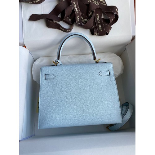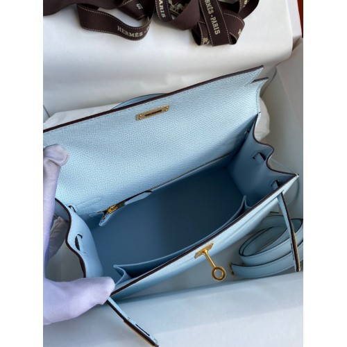 Hermes Kelly Sellier 25CM Handmade Bag In Celeste Epsom Calfskin