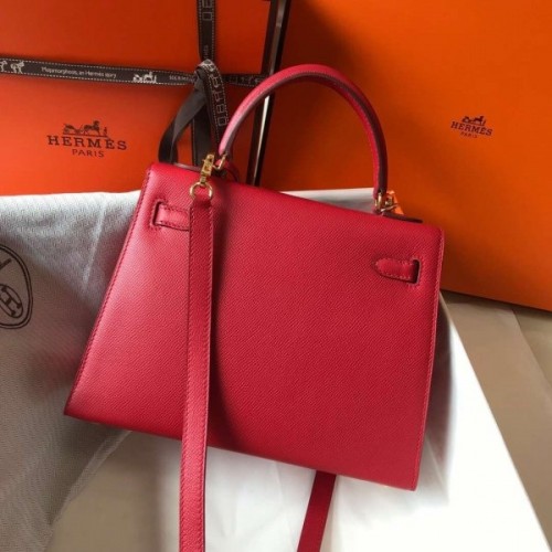 Hermes Red Epsom Kelly 25cm Sellier Handmade Bag