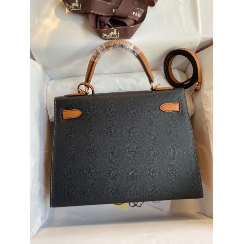 Hermes Kelly Sellier 28 Bicolor Bag in Black and Gold Epsom Calfskin