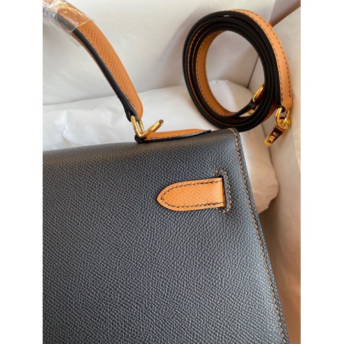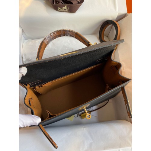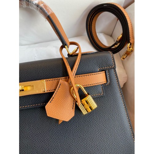 Hermes Kelly Sellier 28 Bicolor Bag in Trench and Gold Epsom Calfskin