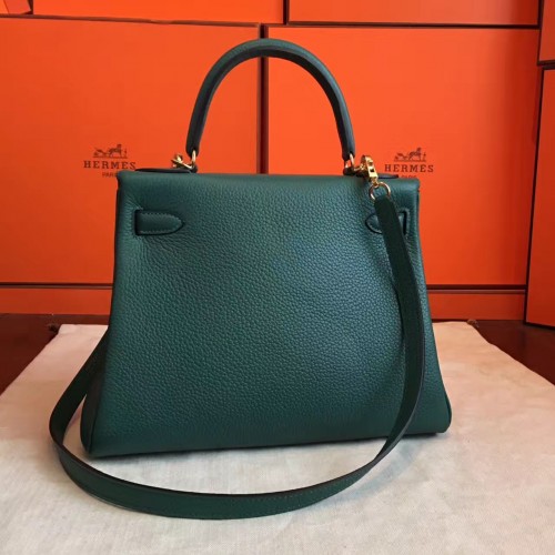 Hermes Malachite Clemence Kelly Retourne 28cm Handmade Bag