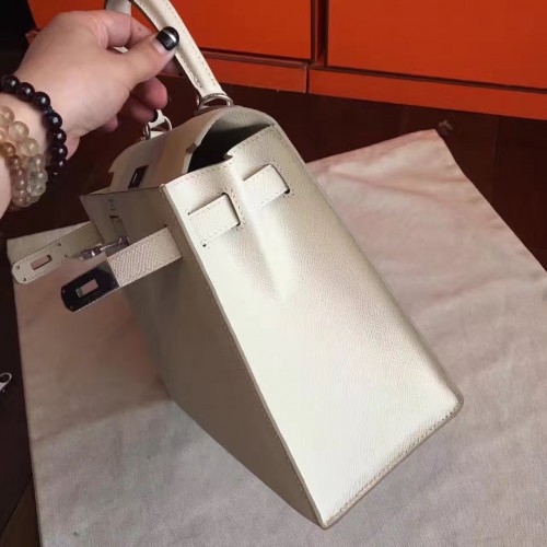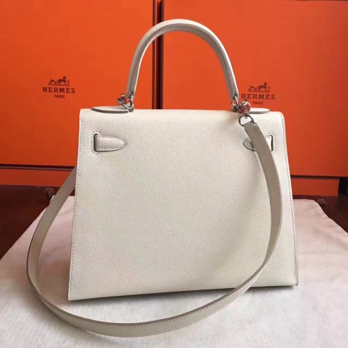 Hermes White Epsom Kelly Sellier 28cm Handmade Bag