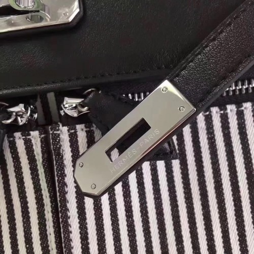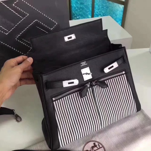 Hermes Herbag Zip PM 31cm Bag In Black Canvas