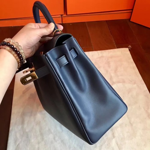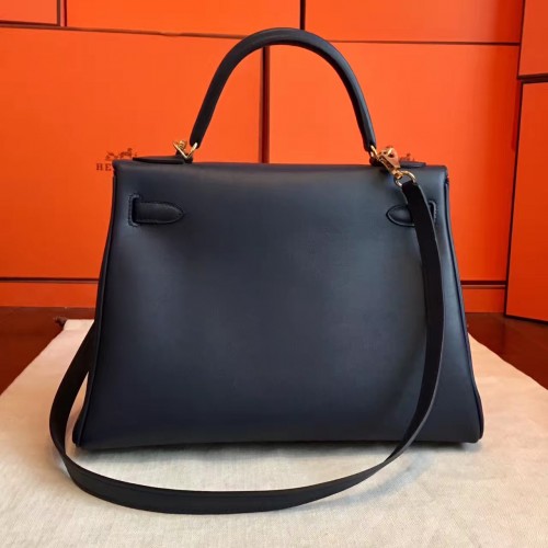 Hermes Black Swift Kelly Retourne 32cm Handmade Bag
