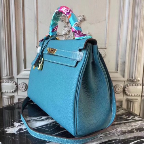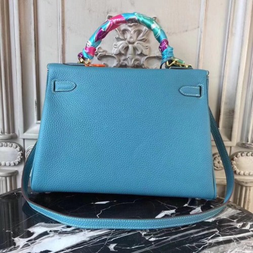 Hermes Blue Jean Clemence Kelly 32cm Retourne Bag