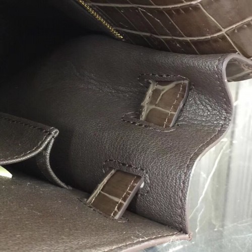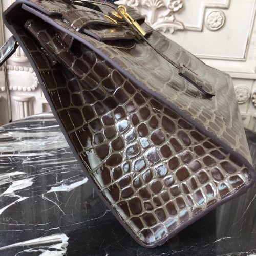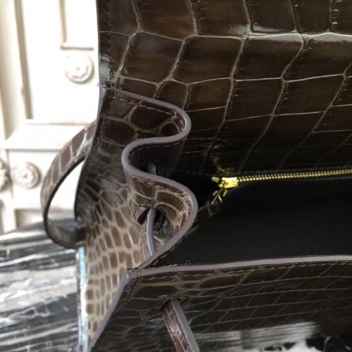 Hermes Kelly 32cm Bag In Chocolate Crocodile Leather