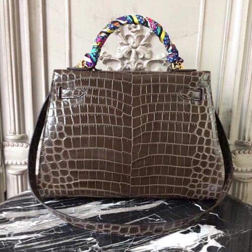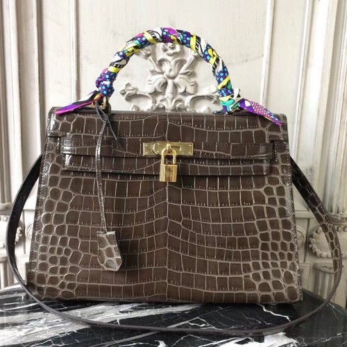 Hermes Kelly 32cm Bag In Bamboo Crocodile Leather
