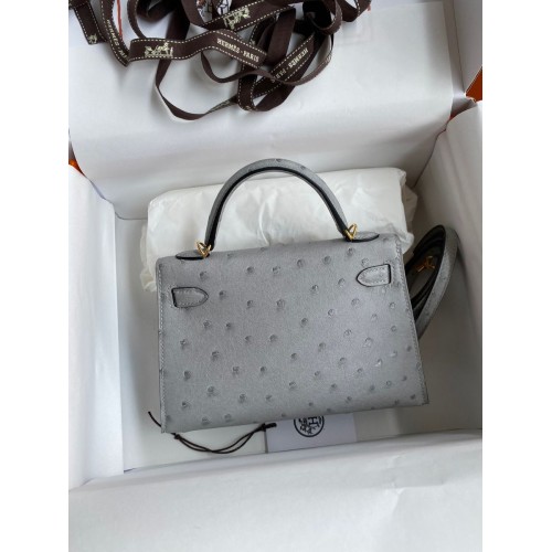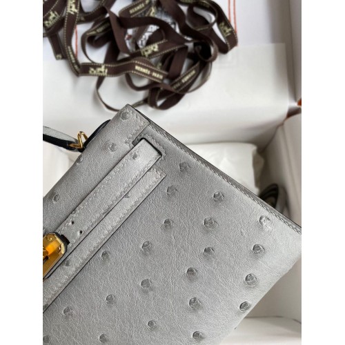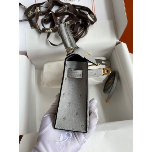 Hermes Kelly Mini II Sellier Handmade Bag In Colvert Ostrich Ostrich Leather