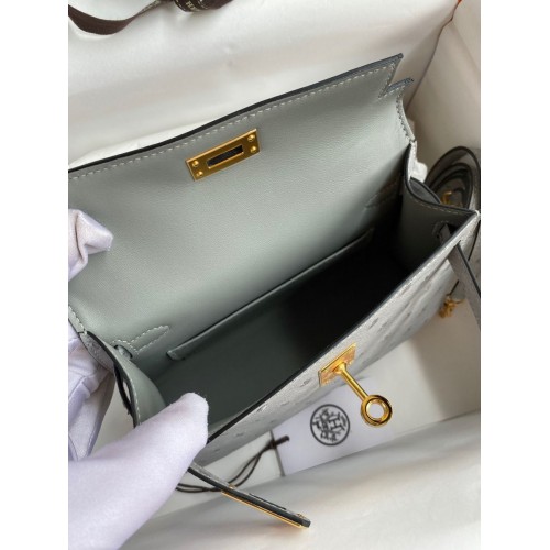 Tags: Hermes Kelly Mini II Sellier Handmade Bag In Bleu Glacier Ostrich Leather, Hermes Kelly Mini, Kelly 20cm