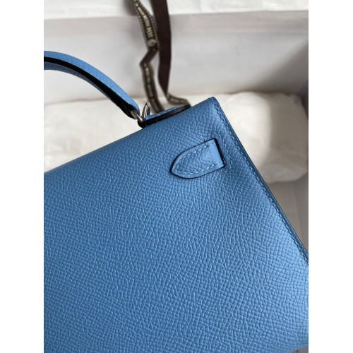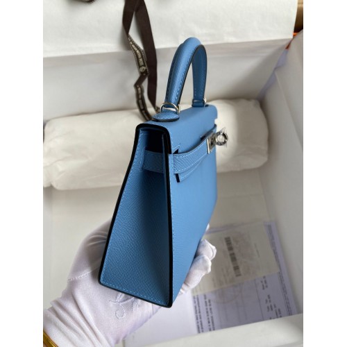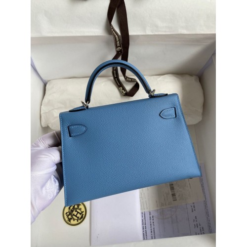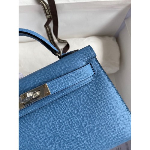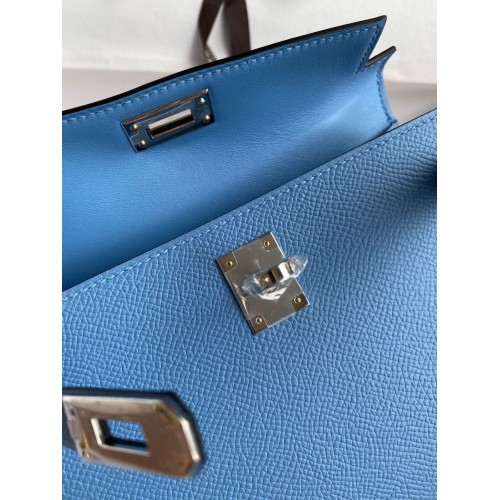 Hermes Kelly Mini II Sellier Handmade Bag In Blue Glacier Epsom Calfskin