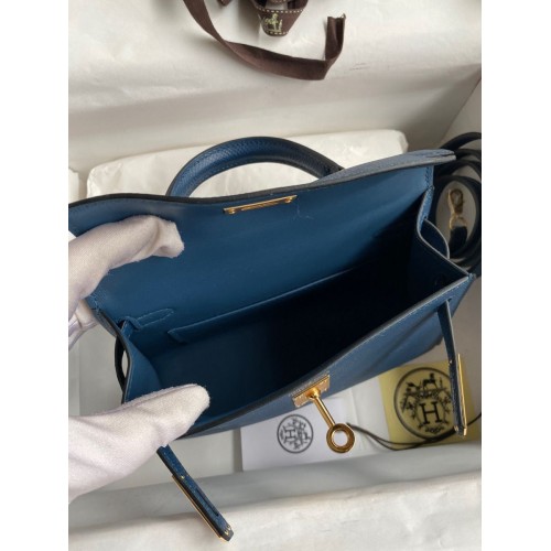 Hermes Kelly Mini II Sellier Handmade Bag In Blue Paradise Epsom Calfskin