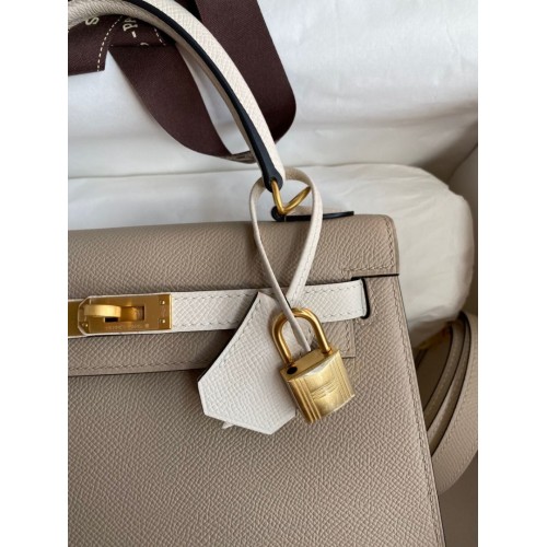 Hermes Kelly Sellier 25 Bicolor Bag in Craie and Trench Epsom Calfskin
