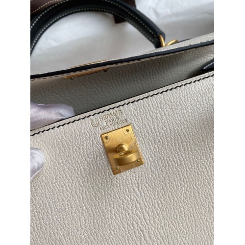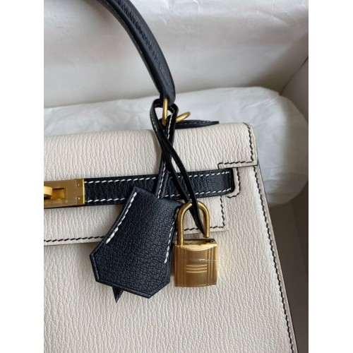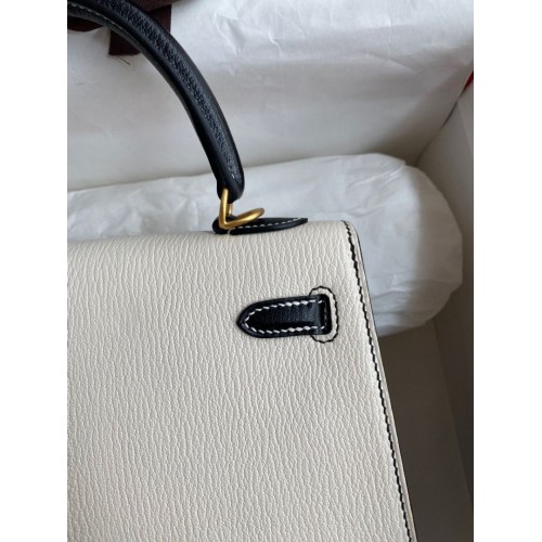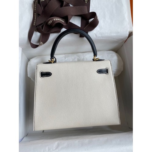 Hermes Kelly Sellier 25 Bicolor Bag in White and Black Mysore Goatskin