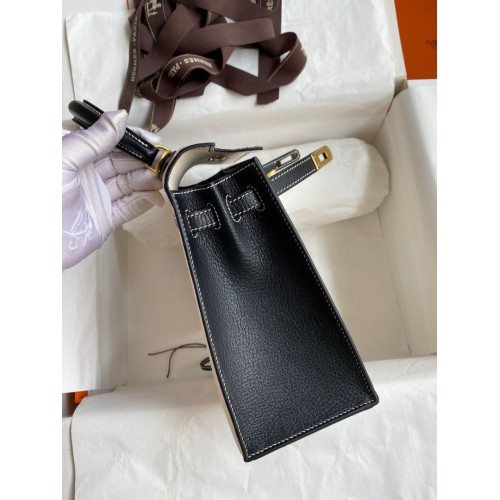 Hermes Kelly Sellier 25 Bicolor Bag in Black and Gold Epsom Calfskin