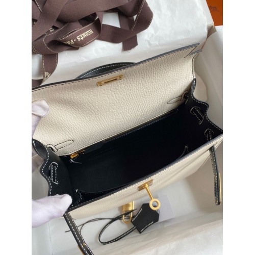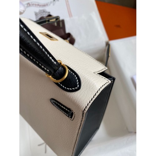 Tags: Hermes Kelly Sellier 25 Bicolor Bag in White and Black Mysore Goatskin, Kelly 25cm