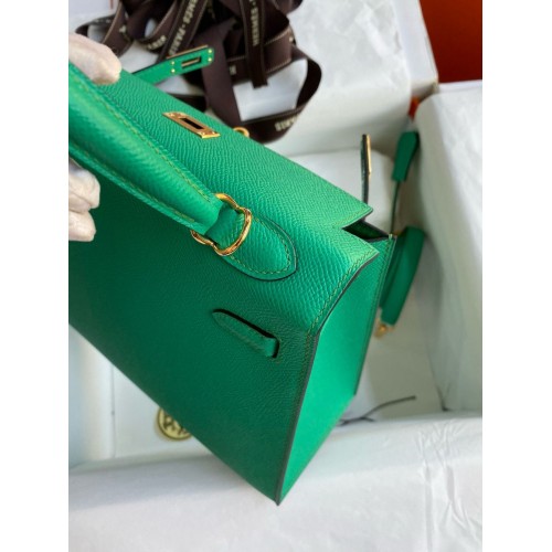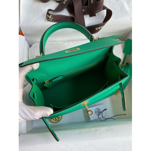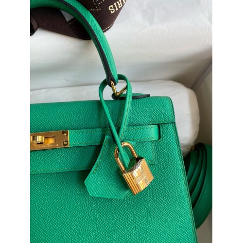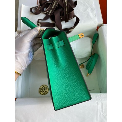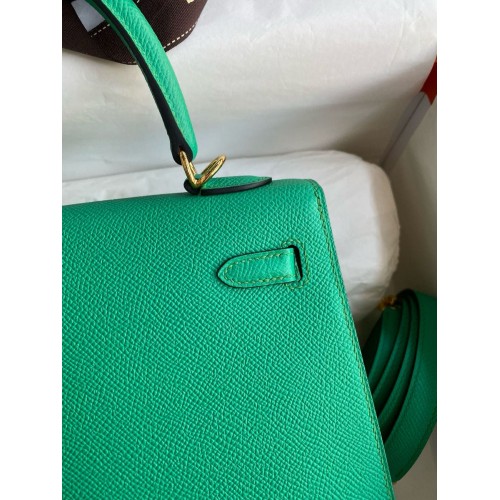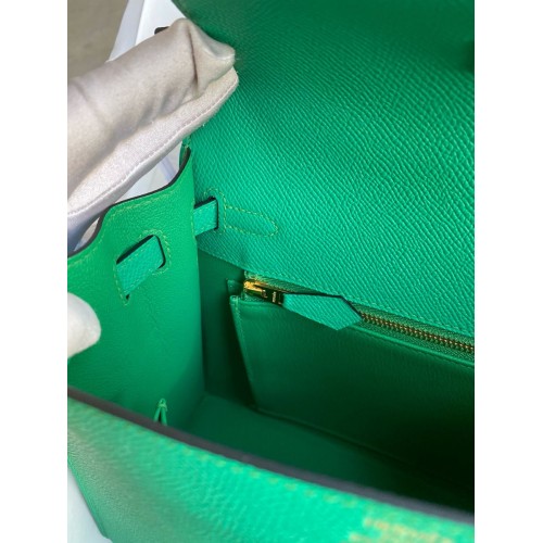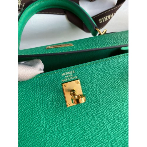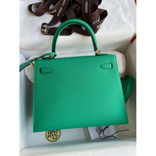 Hermes Kelly Sellier 25CM Handmade Bag In Malachite Epsom Calfskin