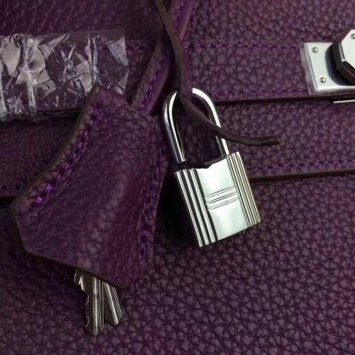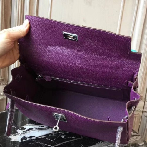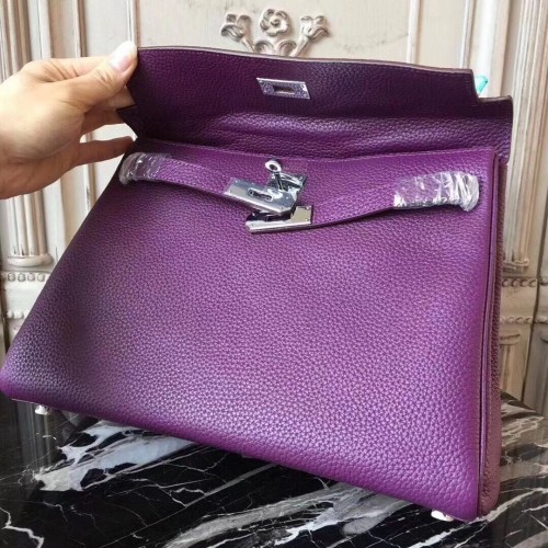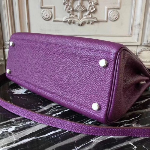Hermes Purple Clemence Kelly 28cm Bag