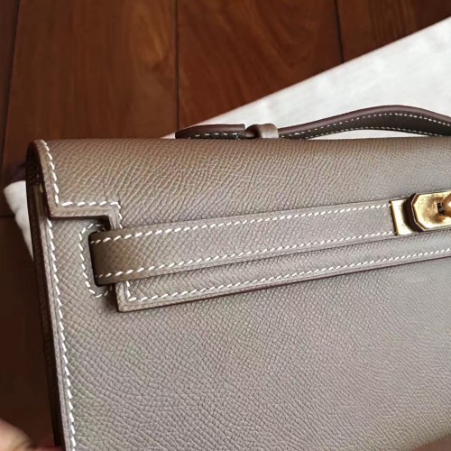 Hermes Etoupe Epsom Kelly Cut Clutch Handmade Bag