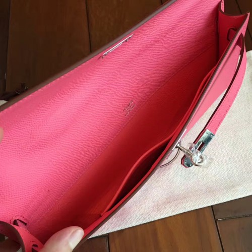 Hermes Rose Lipstick Epsom Kelly Cut Clutch Handmade Bag