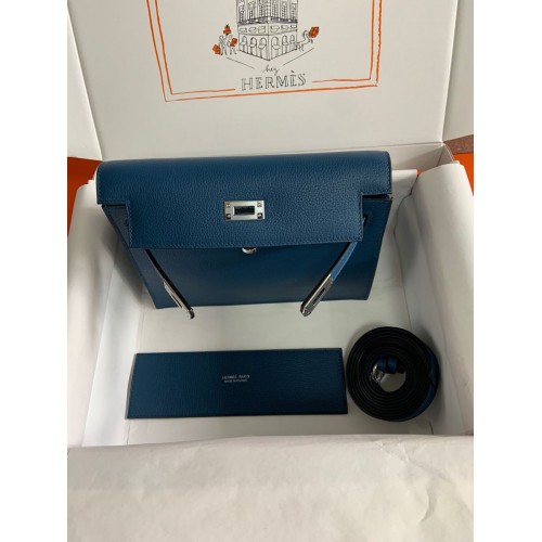 Hermes Kelly Danse II Bag In Deep Blue Evercolor Calfskin