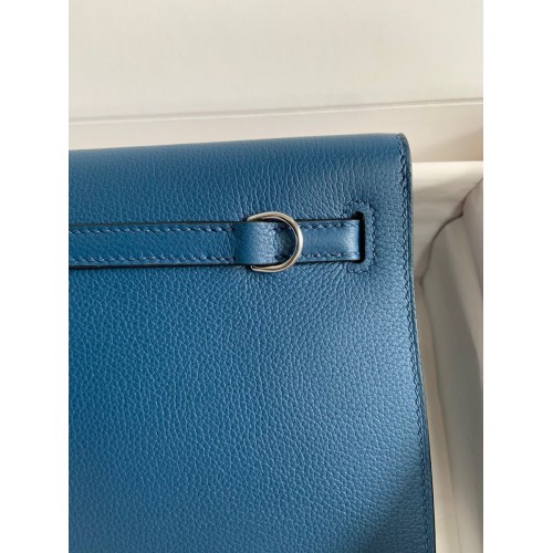 Hermes Kelly Danse II Bag In Blue Lin Evercolor Calfskin