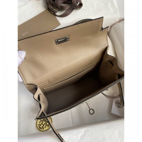 Hermes Kelly Danse II Bag In Taupe Evercolor Calfskin