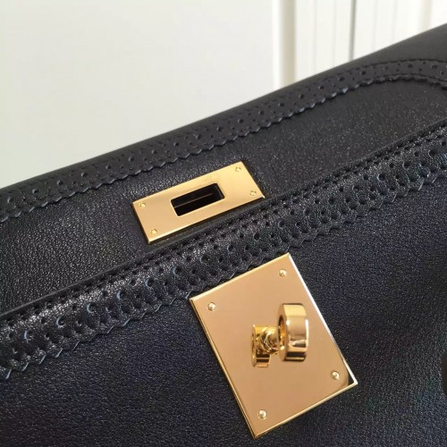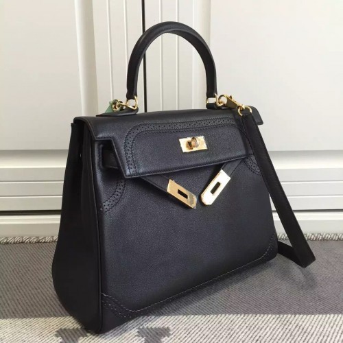 Hermes Kelly Ghillies 28cm In Black Swift Leather