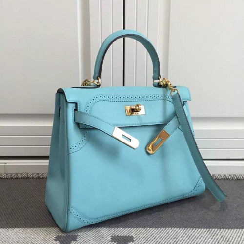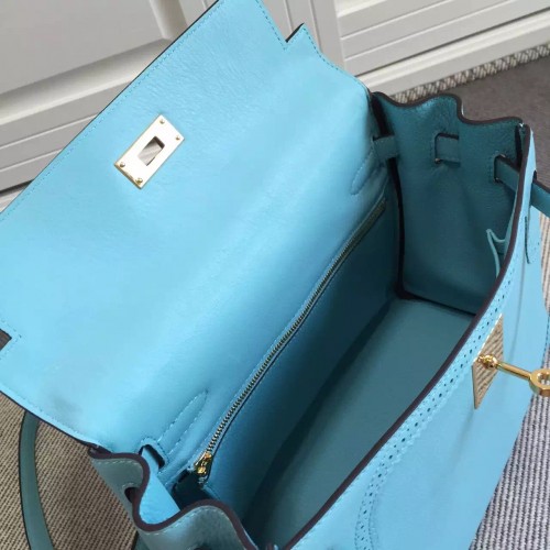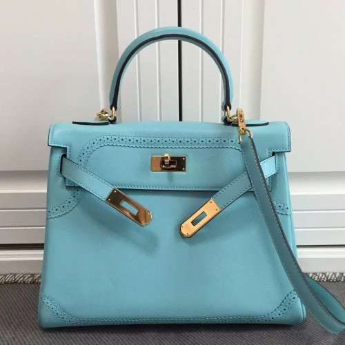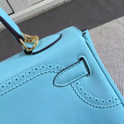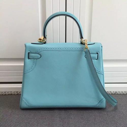 Hermes Kelly Ghillies 28cm In Light Blue Swift Leather