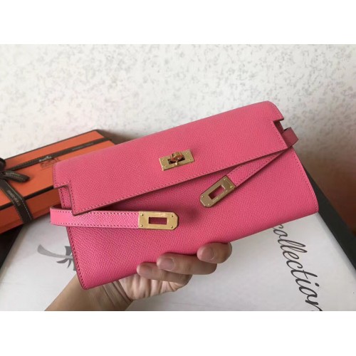 Hermes Kelly Classic Long Wallet In Pink Epsom Leather