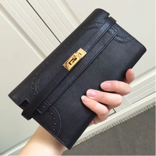 Hermes Kelly Ghillies Wallet In Black Swift Leather