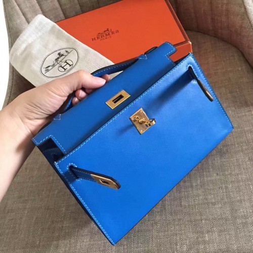 Hermes Blue Izmir Swift Kelly Pochette Handmade Bag