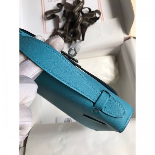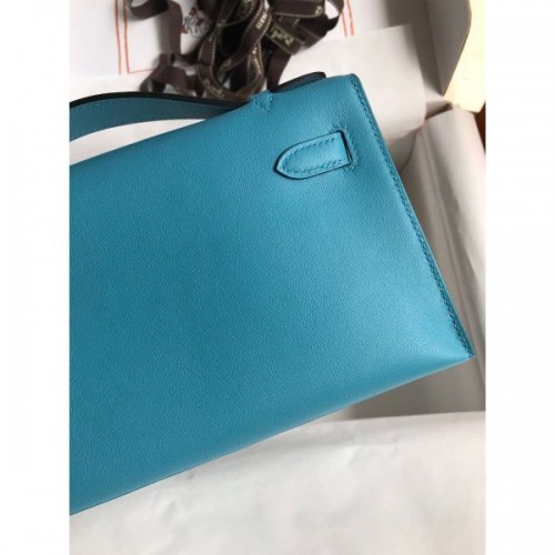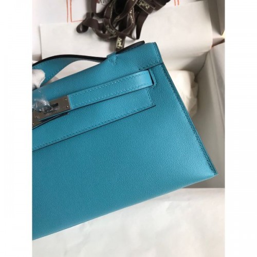 Tags: Hermes Kelly Pochette Handmade Bag In Blue du Nord Swift Calfskin, Kelly Pochette
