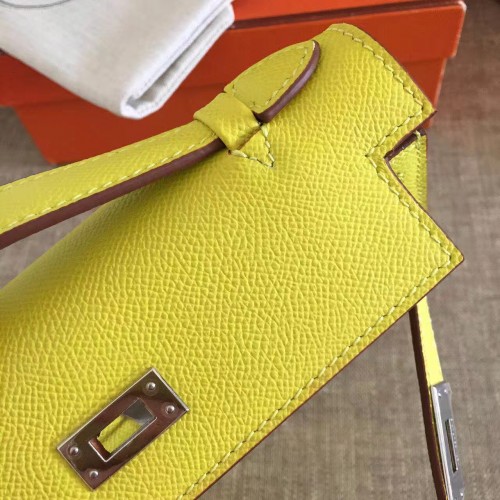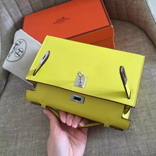 Hermes Soufre Epsom Kelly Pochette Handmade Bag