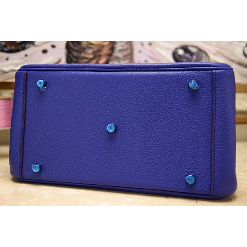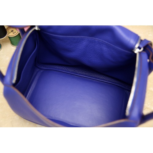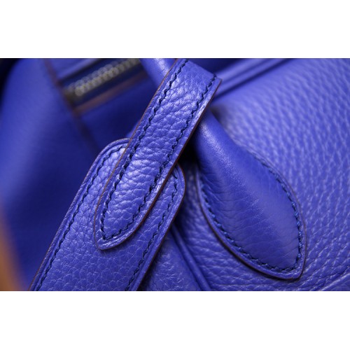 Hermes Blue Electric Clemence Lindy 30cm Bag