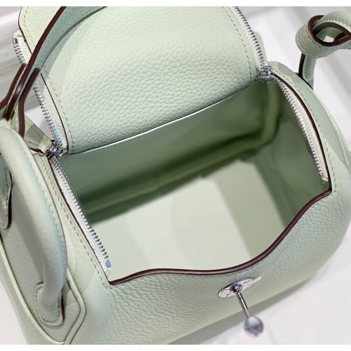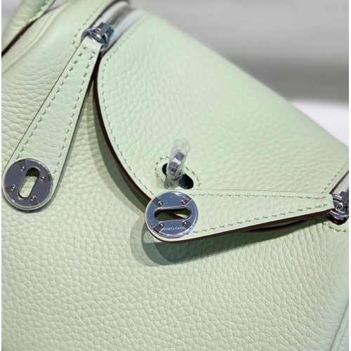 Hermes Lindy Mini Bag In Vert Fizz Clemence Leather