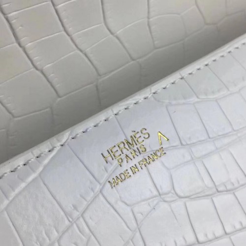 Hermes Medor Clutch Bag In White Crocodile Leather