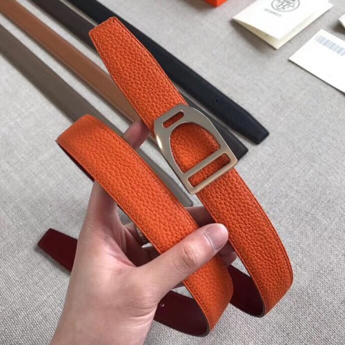 Hermes Etrier Buckle Belt & Orange Clemence 32 MM Strap